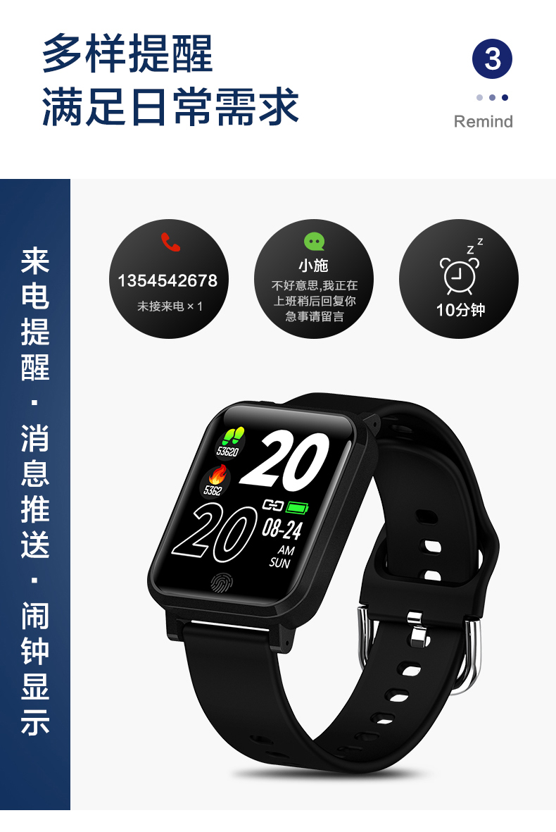 KSUN歩数情报スマイトウォートレー监视血压血酸心率睡眠电话注意报R 905