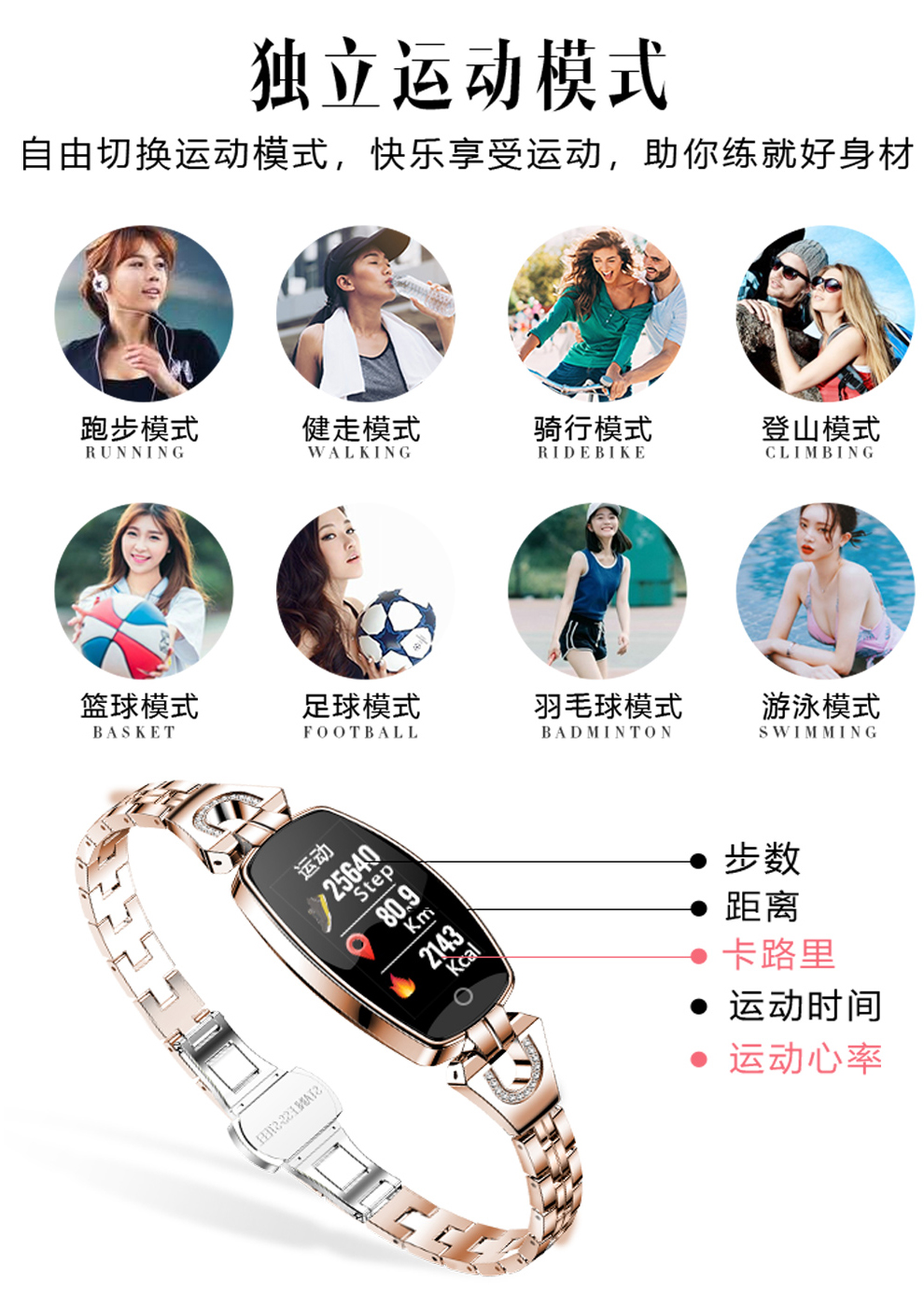 腕時計のブレスレットは女性に適しています。感度が高く、情報を受け取り、血圧を測るのが正確です。外観が綺麗で、もう二回目に買いました。五星に好評です。
