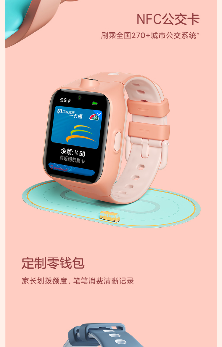 ミミ(MI)ミウサギ供腕時計4ビデオ通話カド4 Gネットワク通話NFC機能バスゲド防水機能ピンク