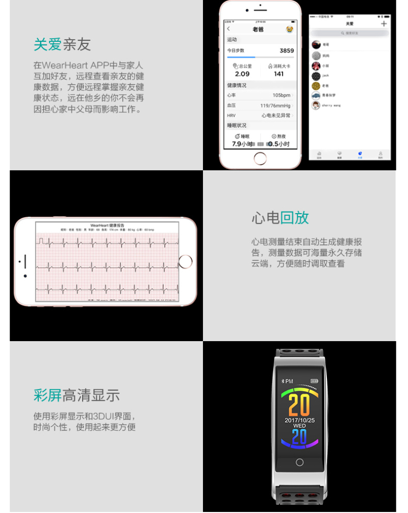 VOSSTRで殴ります。スマートブレスレット、血圧、心電図、カラースクリーン、歩数計、睡眠検知ショートメール、マイクロメール、警告電極腕時計、アップグレード三チップカラースクリーン版、極夜黒【電極+光学測定アップグレード三チップグラフェンボタンカラースクリーン版】