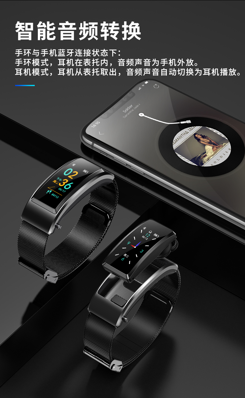 ファン・ウェイの腕轮スマルト男女多目的Bluetooth通话Ӣドの二合腕式ビジェネ音楽腕时计は健康を満たせるものです。