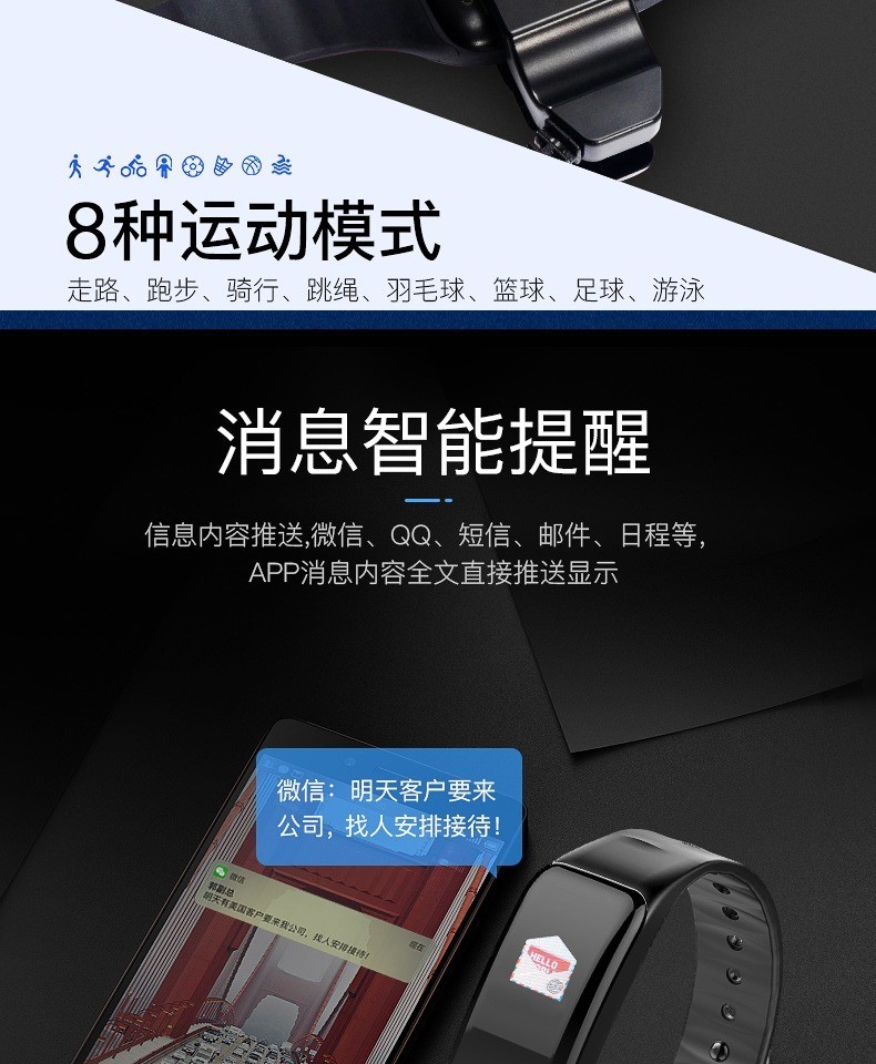 现代演繹运动ハンドリング男女知能ハンドリング心拍血压防水腕时计テーピング学生ファァァァンウェルベルト通用ブラク【水泳防水+多运动モド+心拍血压监视】
