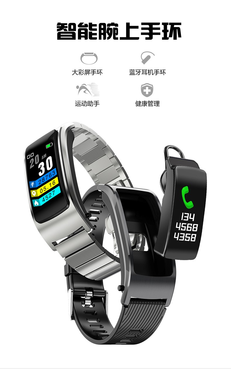 ZPPSNマルチファンクションインテリジェントハンドリングブルートゥースイヤホン二合一分離式通話血圧心拍睡眠監視運動防水アップルファーウェイAndroid通用ブラック汗止めソフトテープ(アップグレード版)